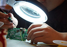 Инженер сервис центра исполняет ремонт: заменяет неработающую деталь пригодной к эксплуатации фирменной комплектующей